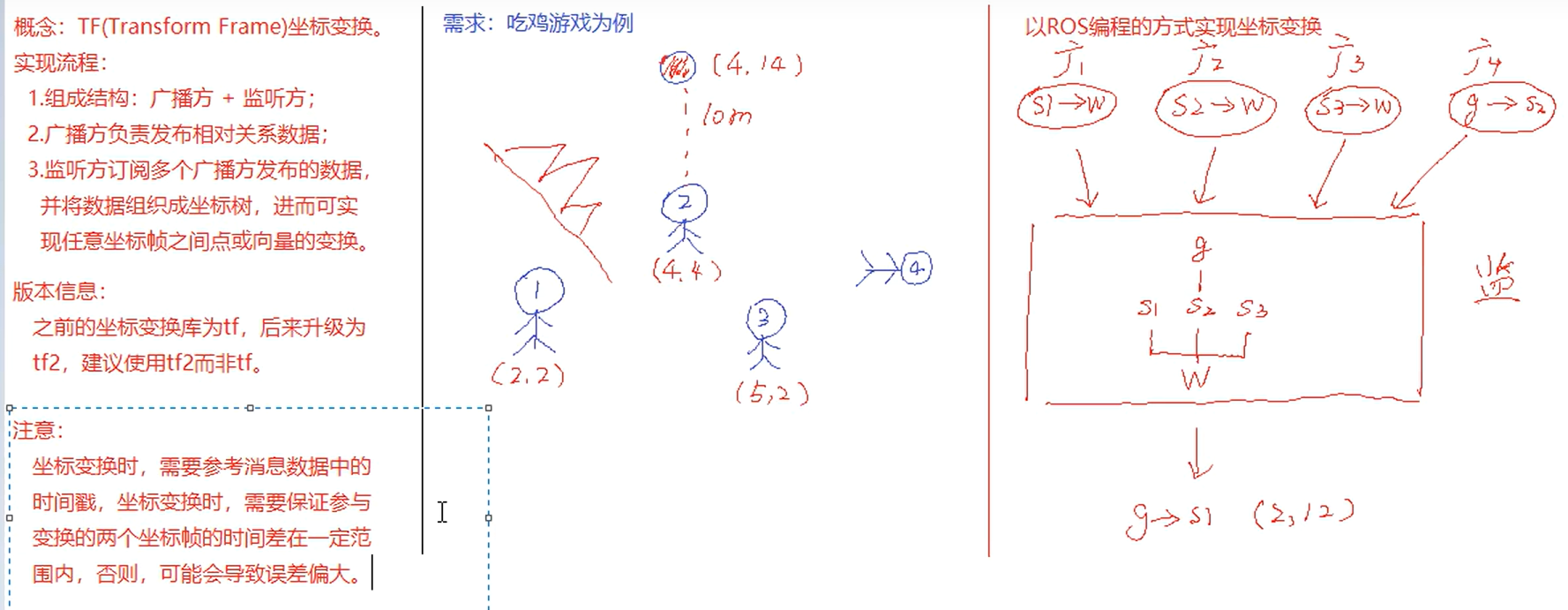 监听可以实现坐标点在不同坐标系之间的变换,或者不同坐标系之间的相互变换。当然,前提是必须要广播出不同坐标系关系,而至于是静态广播或动态广播则无要求。