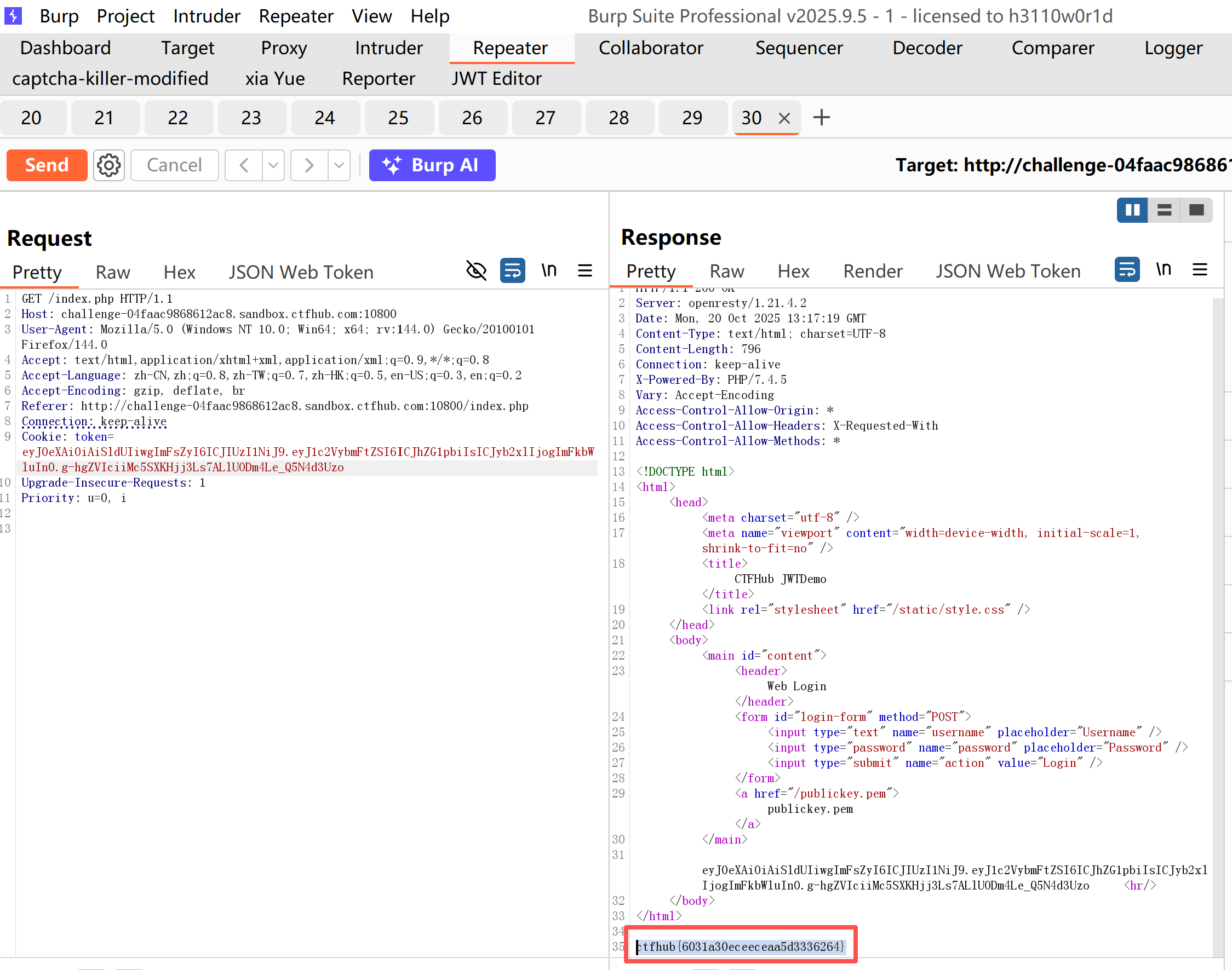发送到repeater,把token的所有改为kali输出的token,send发送,就能拿到flag