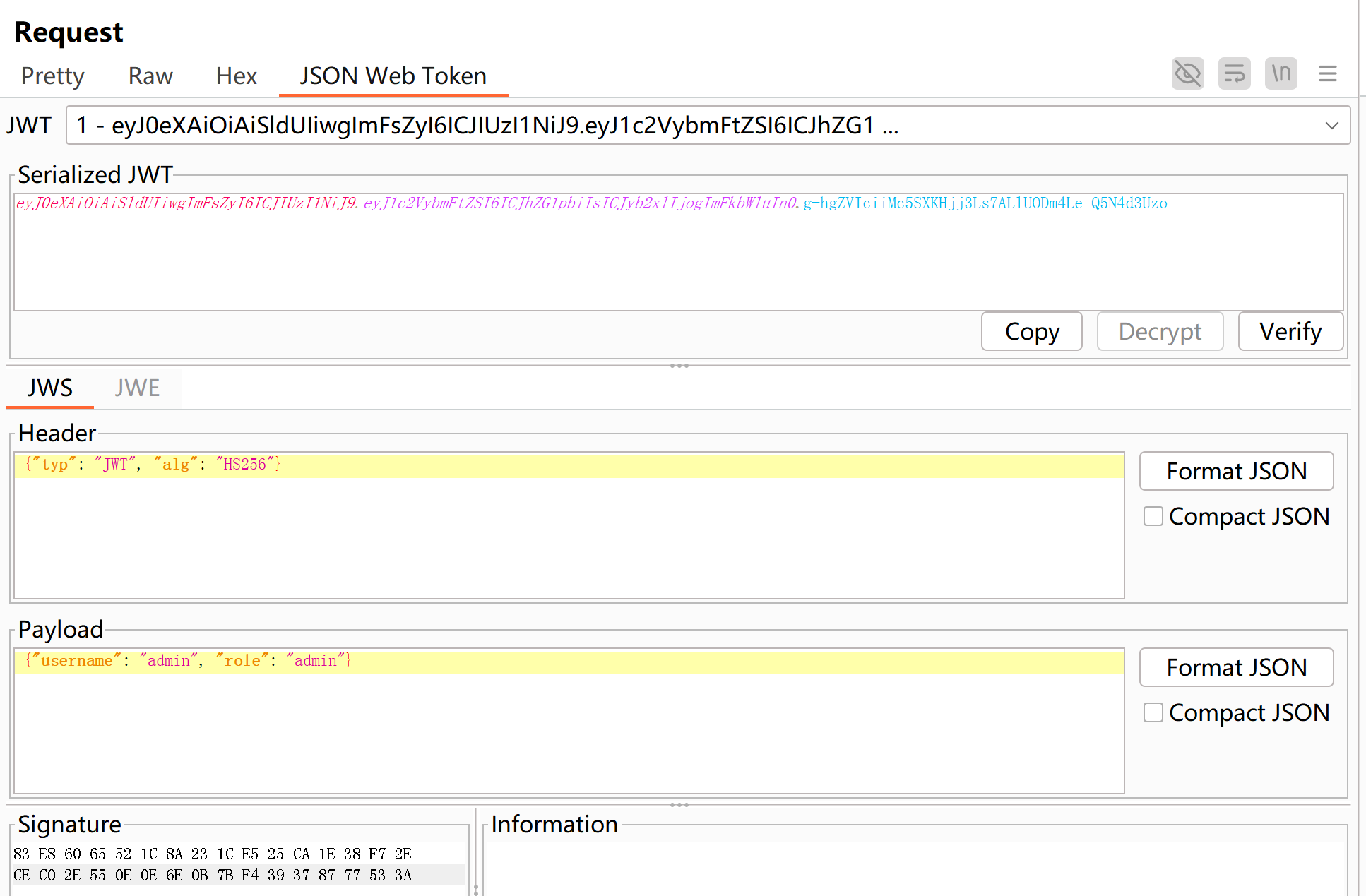 先登录ctf网址,登录admin,密码admin,用bp抓包,复制token到kali用jwt解密