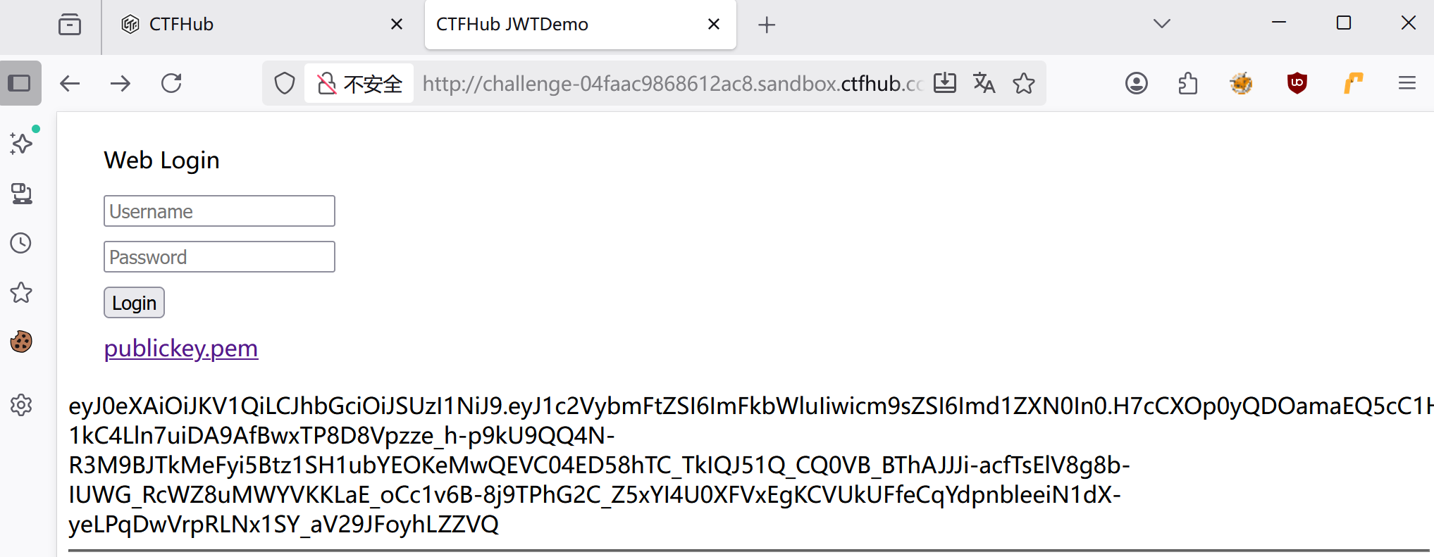 username和password都用admin,admin登录,同时用bp抓包,点publickey.pem可以看到token