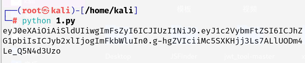 encodePayload = str(encodePBytes, "utf-8").rstrip("=")#Concatenating header and payloadtoken = (encodeHeader + "." + encodePayload)#Creating signaturesig = base64.urlsafe_b64encode(hmac.new(bytes(key, "UTF-8"), token.encode("utf-8"), hashlib.sha256).digest()).decode("UTF-8").rstrip("=")print(token + "." + sig)