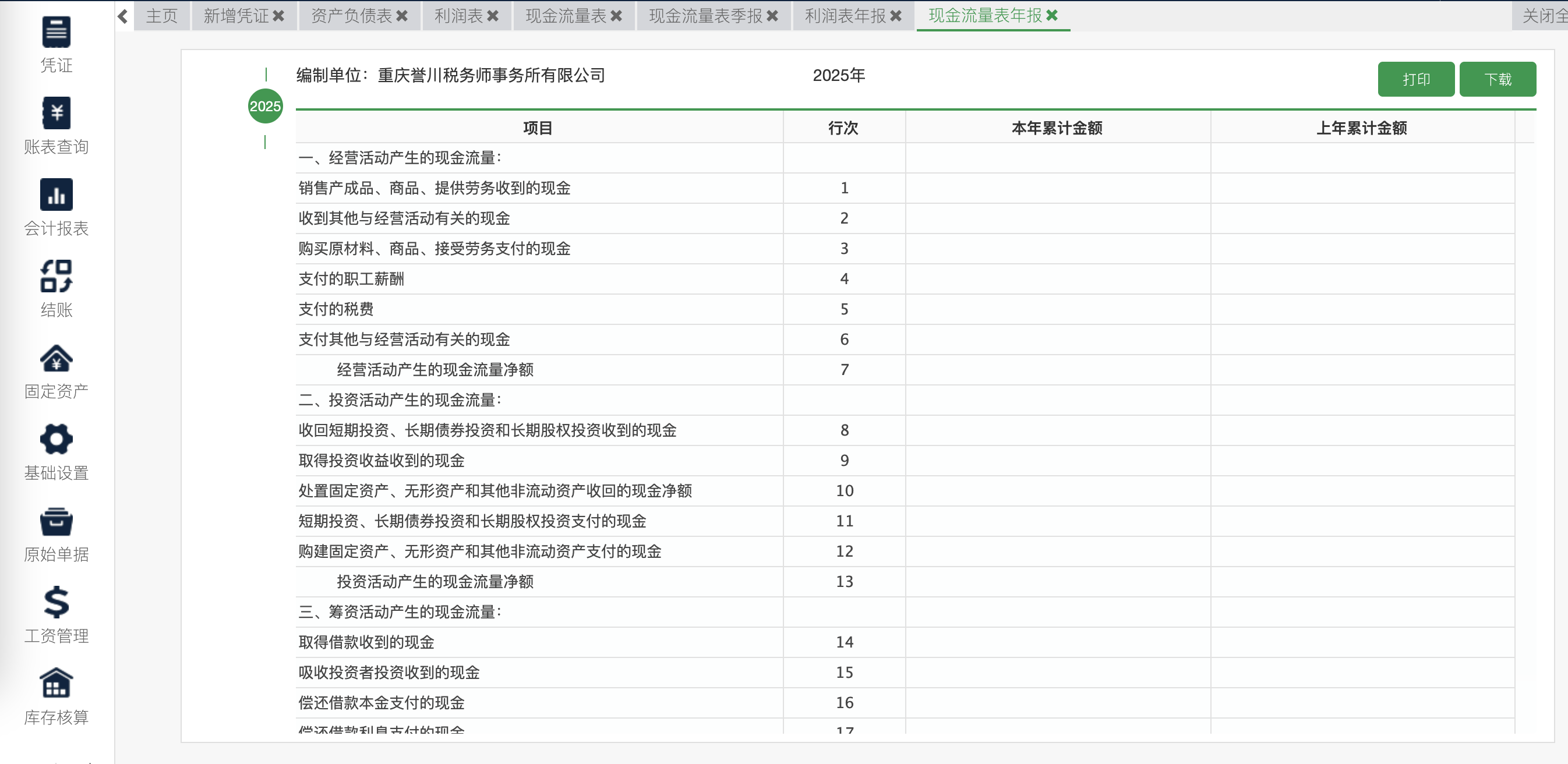 全流程财务管理 - 涵盖凭证管理、账表查询、会计报表(资产负债表、利润表、现金流量表)