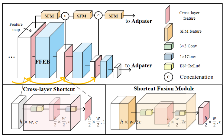 我们引入了一种结合模型中多尺度和多层特征的新方法,如图4所示。我们的方法包括使用跨层快捷方式和融合分支,其中融合分支收集每个编码器层的输出,并使用一系列快捷方式融合模块(SFMs)逐层集成它们。本质上,Fusion Branch 可以被认为是一个子编码器,它有助于我们模型的最终输出。