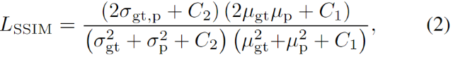 2)SSIM损失:SSIM(结构相似性指数度量)是一种评估图像质量的方法,最早是在[41]中引入的。SSIM不是逐个像素地计算损失,而是计算全局尺度上的损失,更多地关注图像的整体结构和分布,而不是其单独的细节。