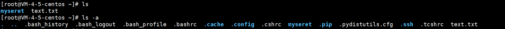 - 我在这里先建立了一个mysecret目录和text.txt文本文件(不用管,后面会讲)然后用ls它就显示当前目录下的文件名
