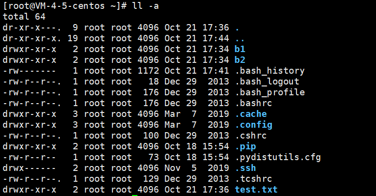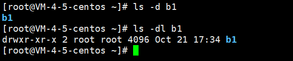 drwxr-xr-x 2 root root 4096 0ct 21 17:34 b1 : 这里的 d 表示是一个目录