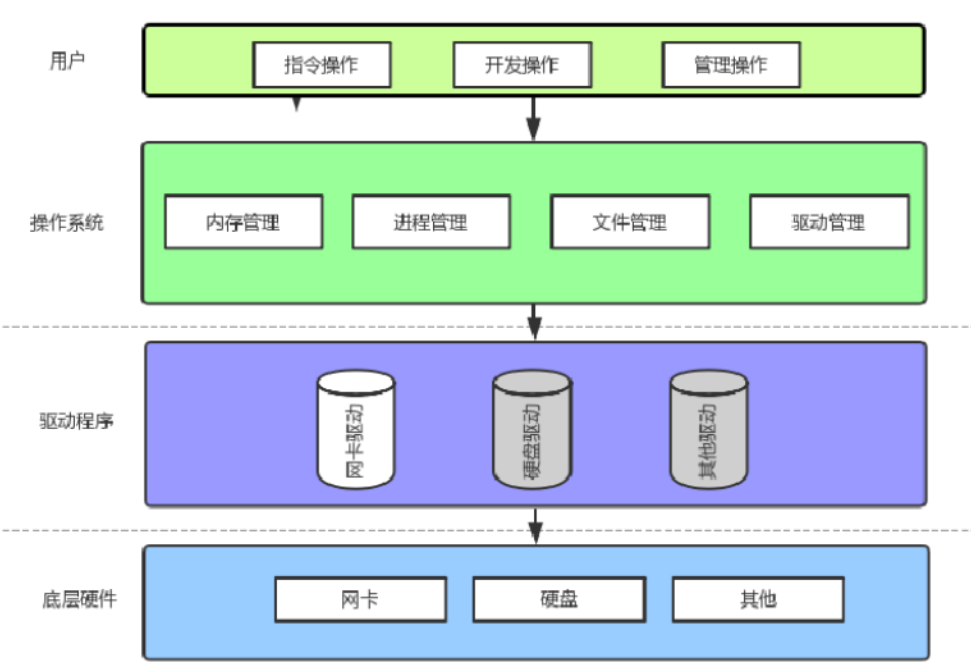 - 我们在计算机上的行为都会转化为硬件行为,我们所有的软件行为全部都要自定向下贯穿计算机的软硬件结构,都要经由操作系统
