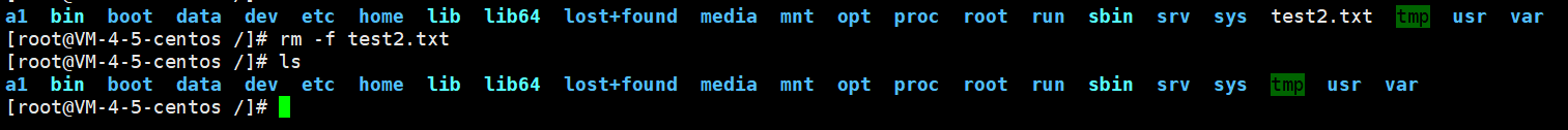 强制删除了 test2.txt ,rm -f中的 :f==force;