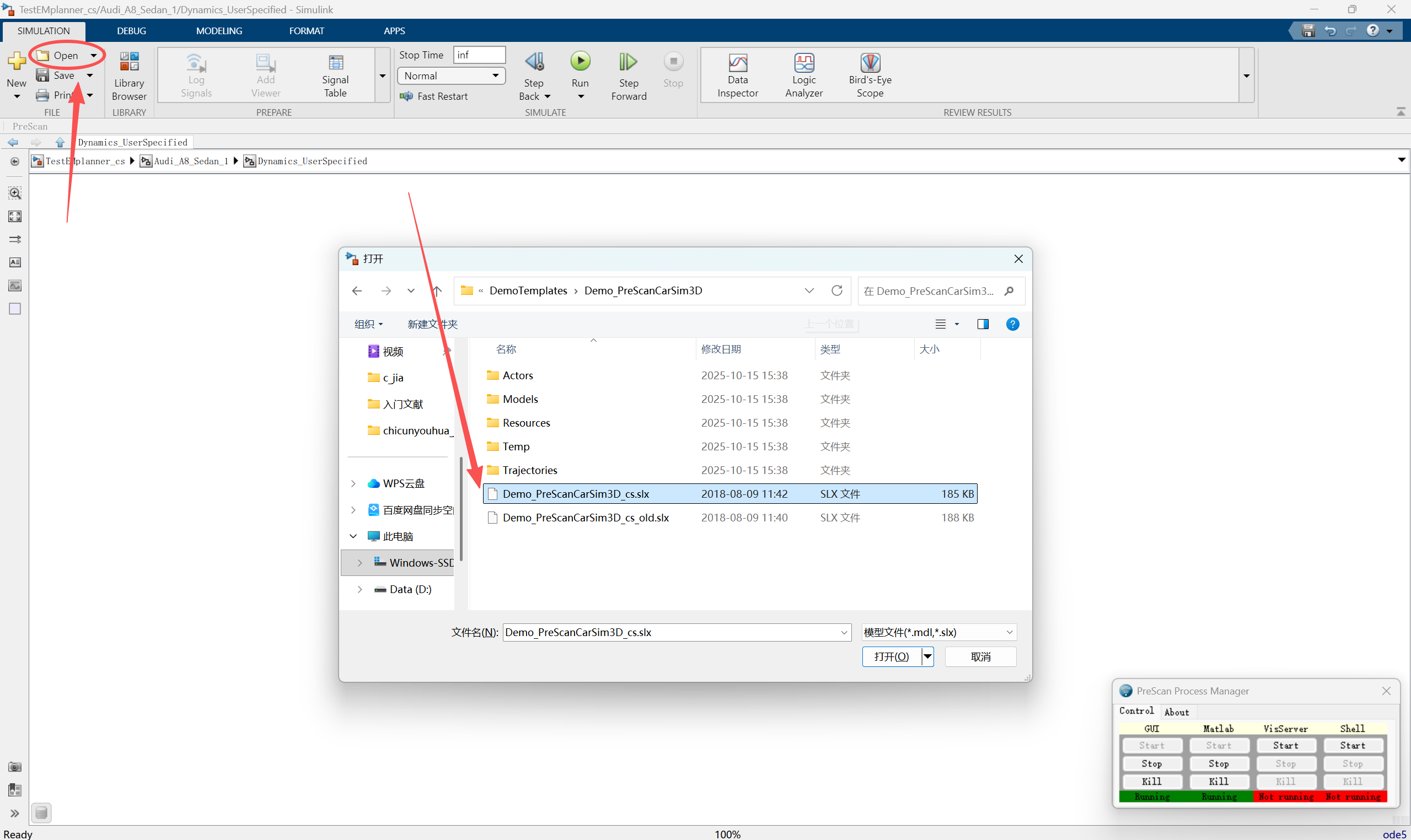 打开上文提及的.cpar文件(Demo_PreScanCarSim3D.cpar)