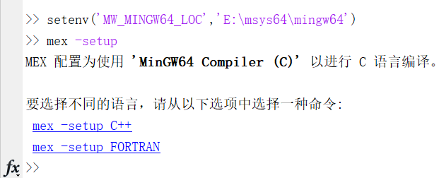 setenv('MW_MINGW64_LOC','E:\msys64\mingw64')