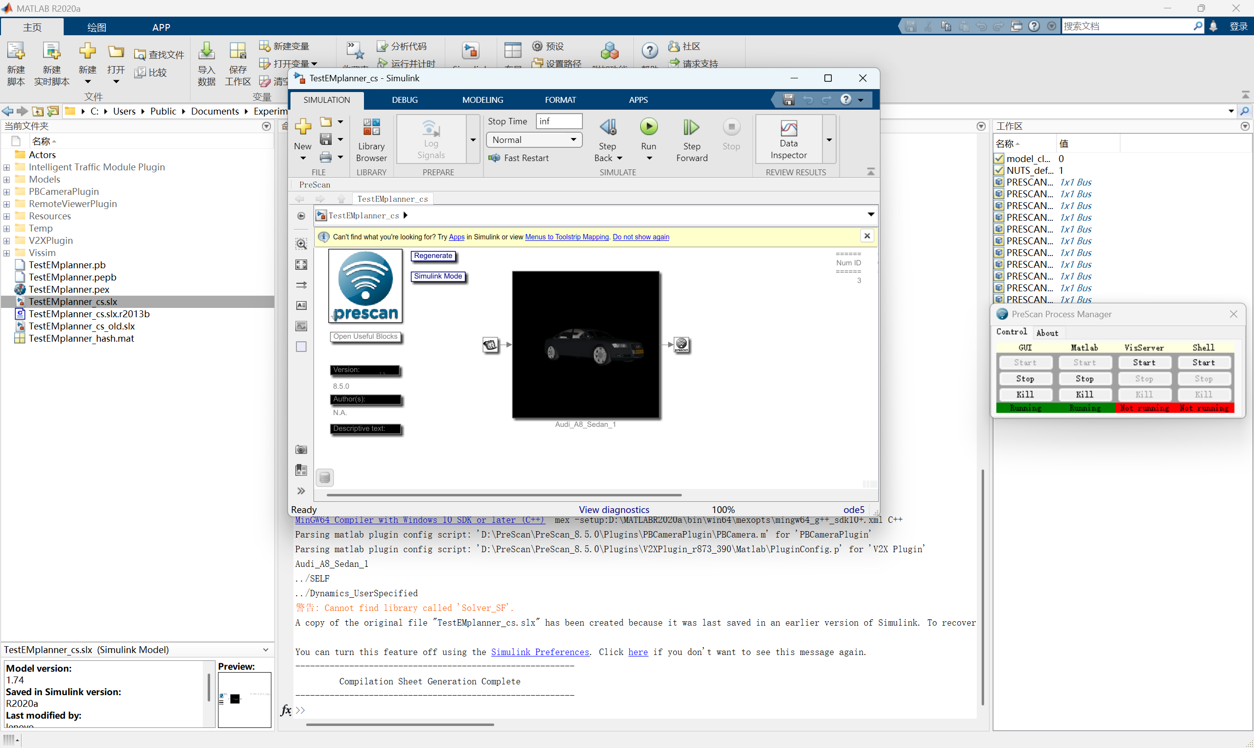 要用Prescan做联合仿真,回到Prescan: