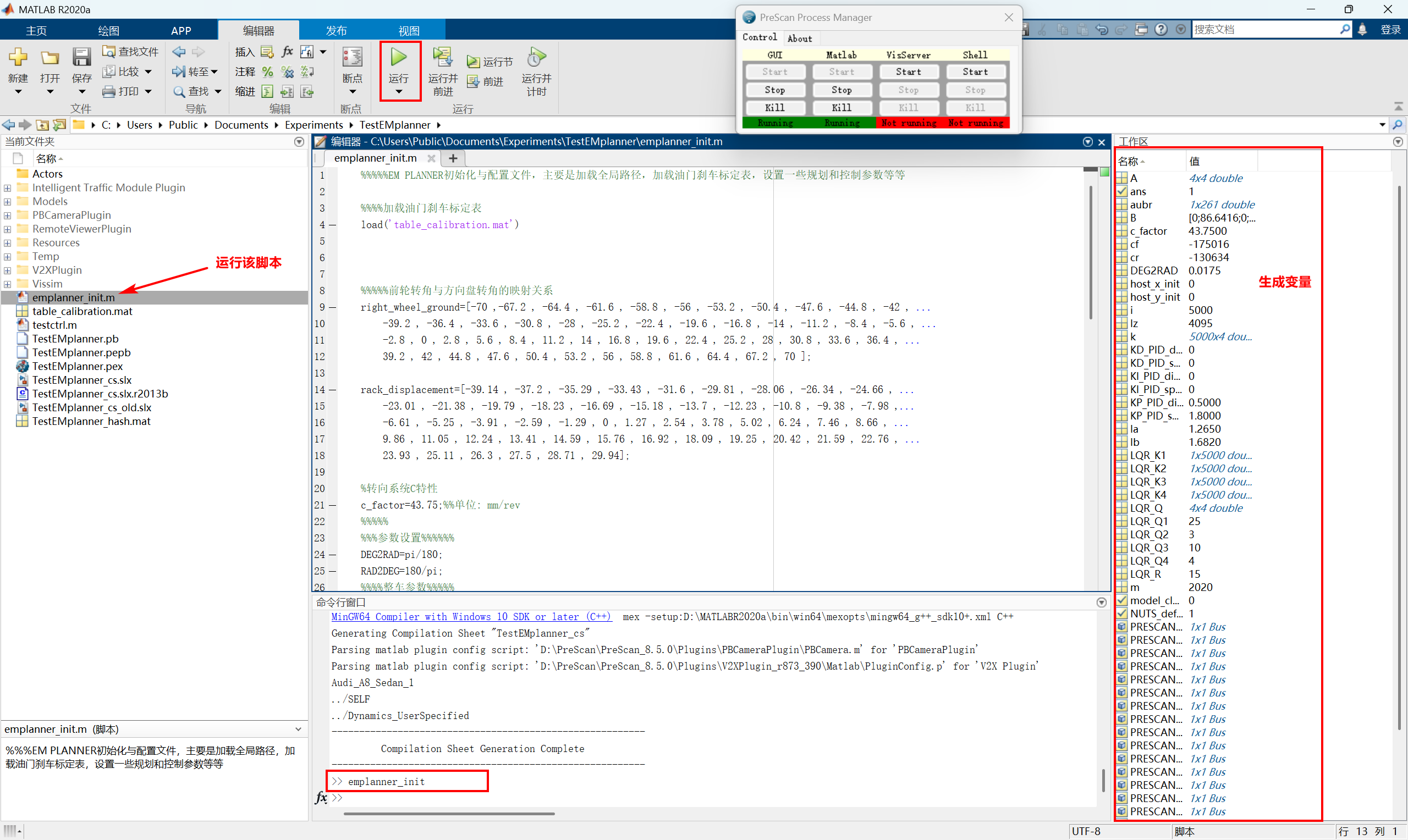 打开matlab,找到emplanner_init.m文件,运行:
