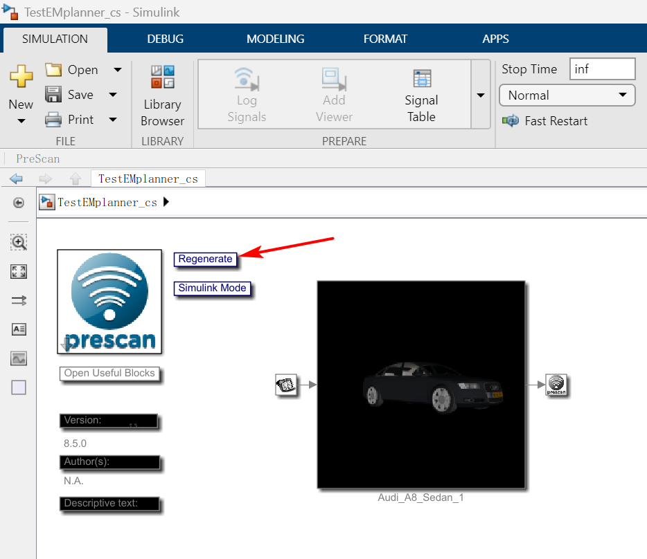注意:当有改动,prescan里Build一下,Simulink里Regenerate一下
