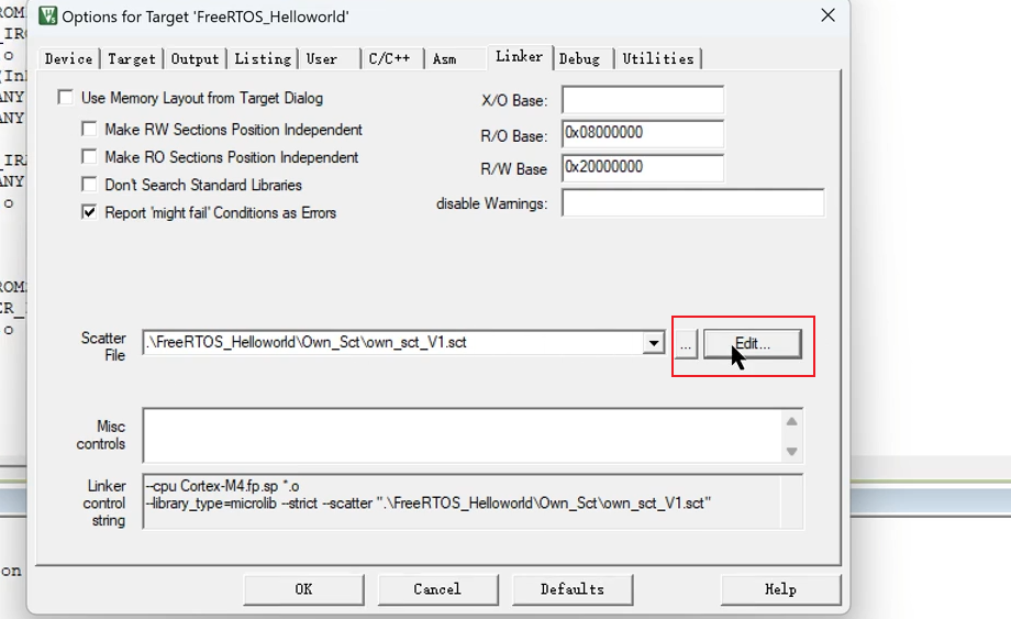 ; *************************************************************LR_IROM1 0x08000000 0x00070000 { ; load region size_regionER_IROM1 0x08000000 0x00070000 { ; load address = execution address*.o (RESET, +First)*(InRoot$$Sections).ANY (+RO).ANY (+XO)}RW_IRAM1 0x20000000 0x00020000 { ; RW data.ANY (+RW +ZI)*.o (myram)}