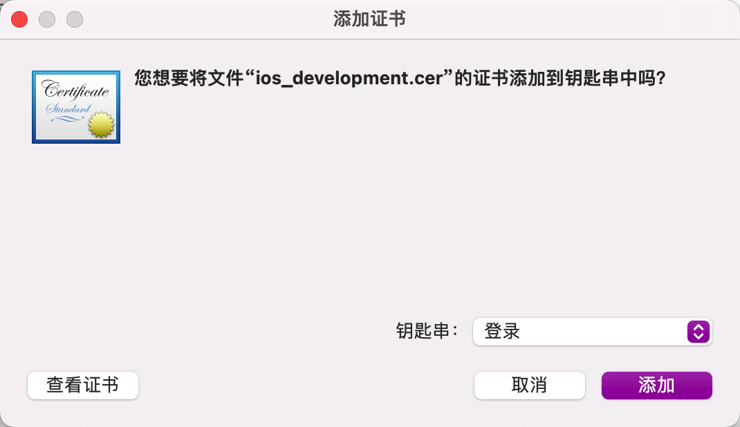 在Certificates Details中点击下载,可以得到 ios_development.cer 文件和ios_distribution.cer文件,双击文件,它会自动被钥匙串访问应用安装到钥匙串中。请确保钥匙串选择为"登录"