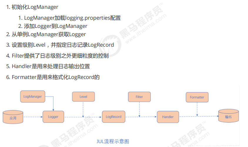 JUL全称Java util Logging是java原生的日志框架,使用时不需要另外引用第三方类库,相对其他日志框架使用方便,学习简单,能够在小型应用中灵活使用。