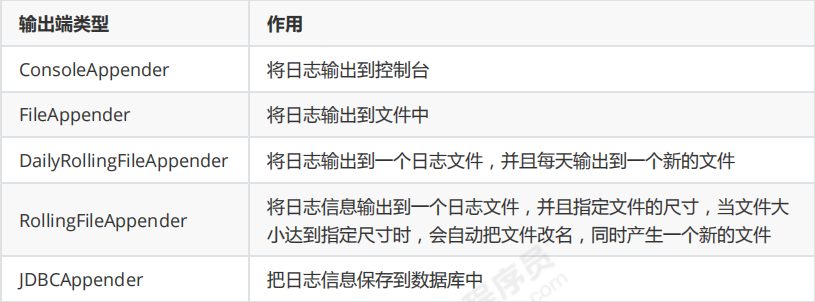 Log4J 主要由 Loggers (日志记录器)、Appenders(输出端)和 Layout(日志格式化器)组成。其中Loggers 控制日志的输出级别与日志是否输出;Appenders 指定日志的输出方式(输出到控制台、文件等);Layout 控制日志信息的输出格式。