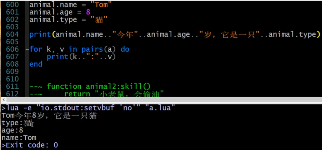 使用 table 也可以定义出类似 map 的 key-value 数据结构。其可以定义 table 时直接指定 key-value,也可单独指定 key-value。而访问时,一般都是通过 table 的 key 直接访问,也可以数组索引方式来访问,此时的 key 即为索引。