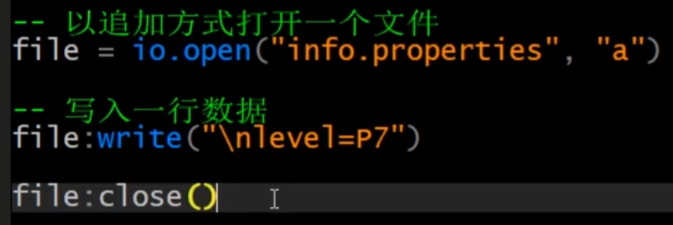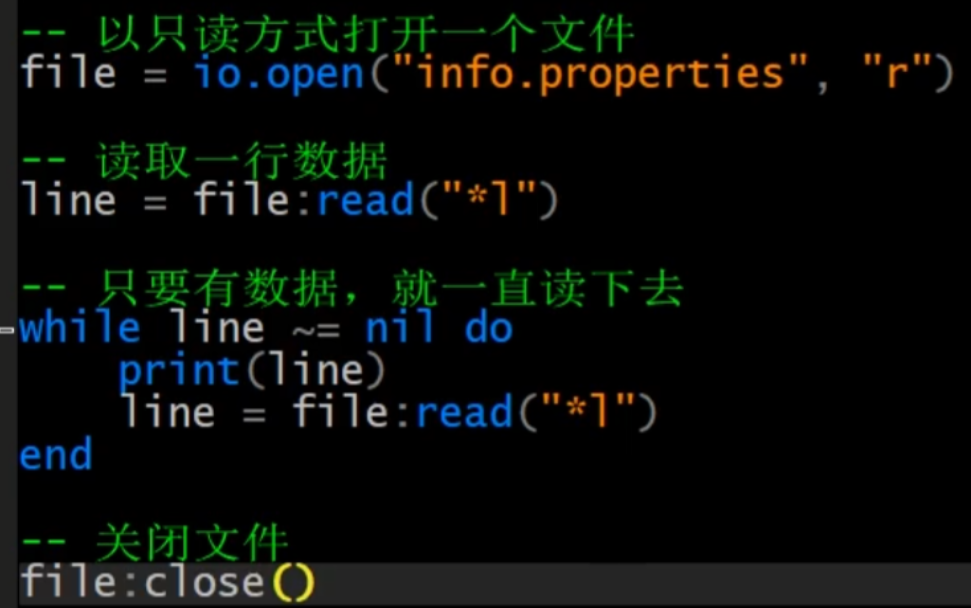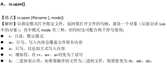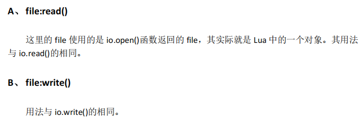 所谓静态函数是指通过 io.xxx()方式对文件进行操作的函数,而实例函数则是通过 Lua 中面向对象方式操作的函数。