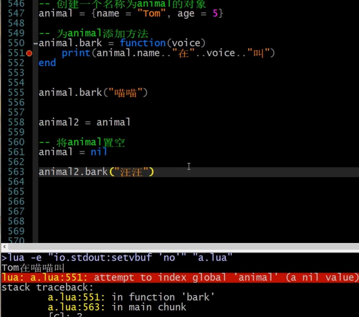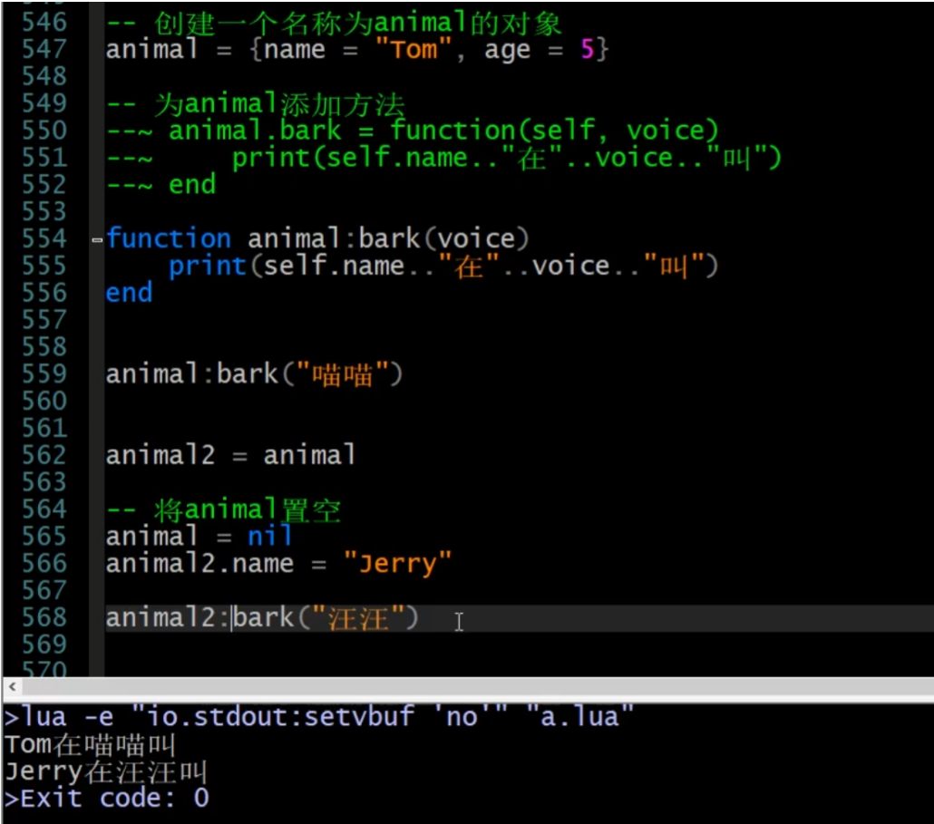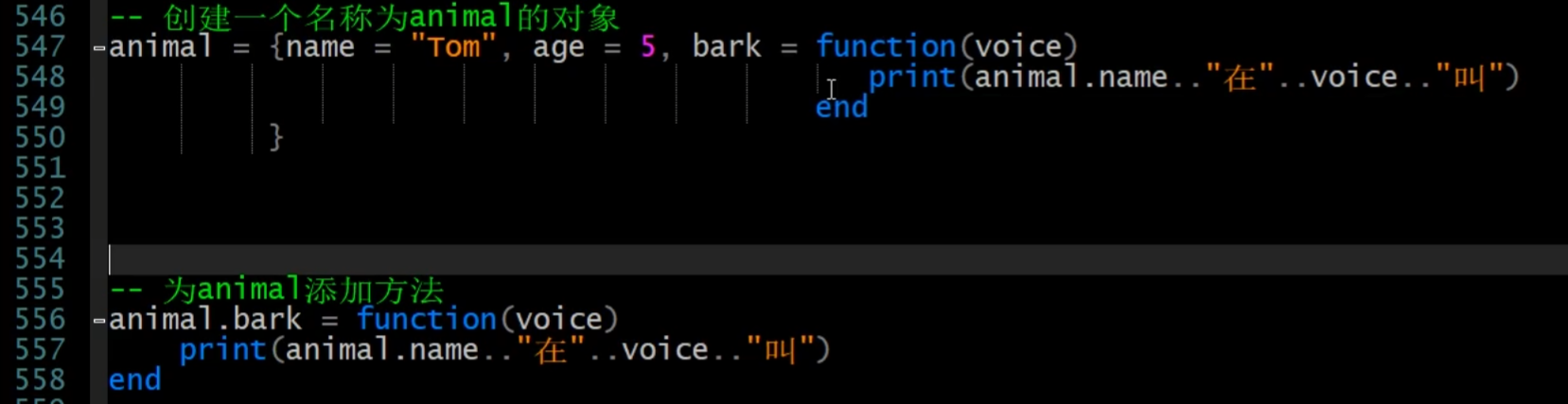 Lua 中通过 table 与 fcuntion 可以创建出一个简单的 Lua 对象:table 为 Lua 对象赋予属性,通过 function 为 Lua 对象赋予行为,即方法。