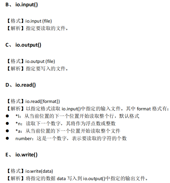 Lua 中提供了大量对文件进行 IO 操作的函数。这些函数分为两类:静态函数与实例函数。