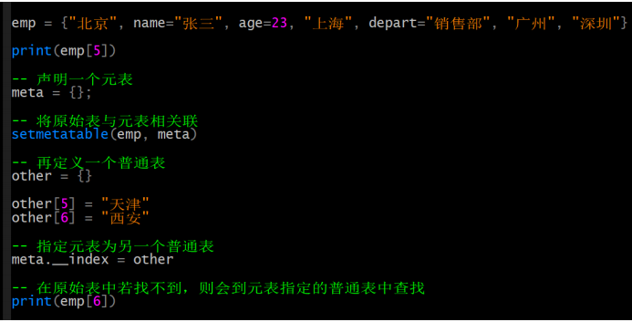 setmetatable(table, metatable):将metatable指定为普通表table的元表;getmetatable(table):获取指定普通表 table 的元表;