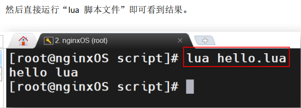 例如,在当前用户主目录中新建一个 script 目录,在其中创建一个名称为 hello.lua 的文件,文件中就写一名 print()语句即可;
