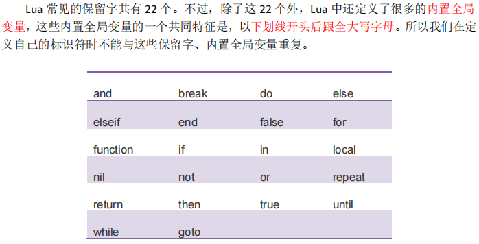 Lua 的标识符由字母、数字与下划线组成,但不能以数字开头。Lua 是大小写敏感的;