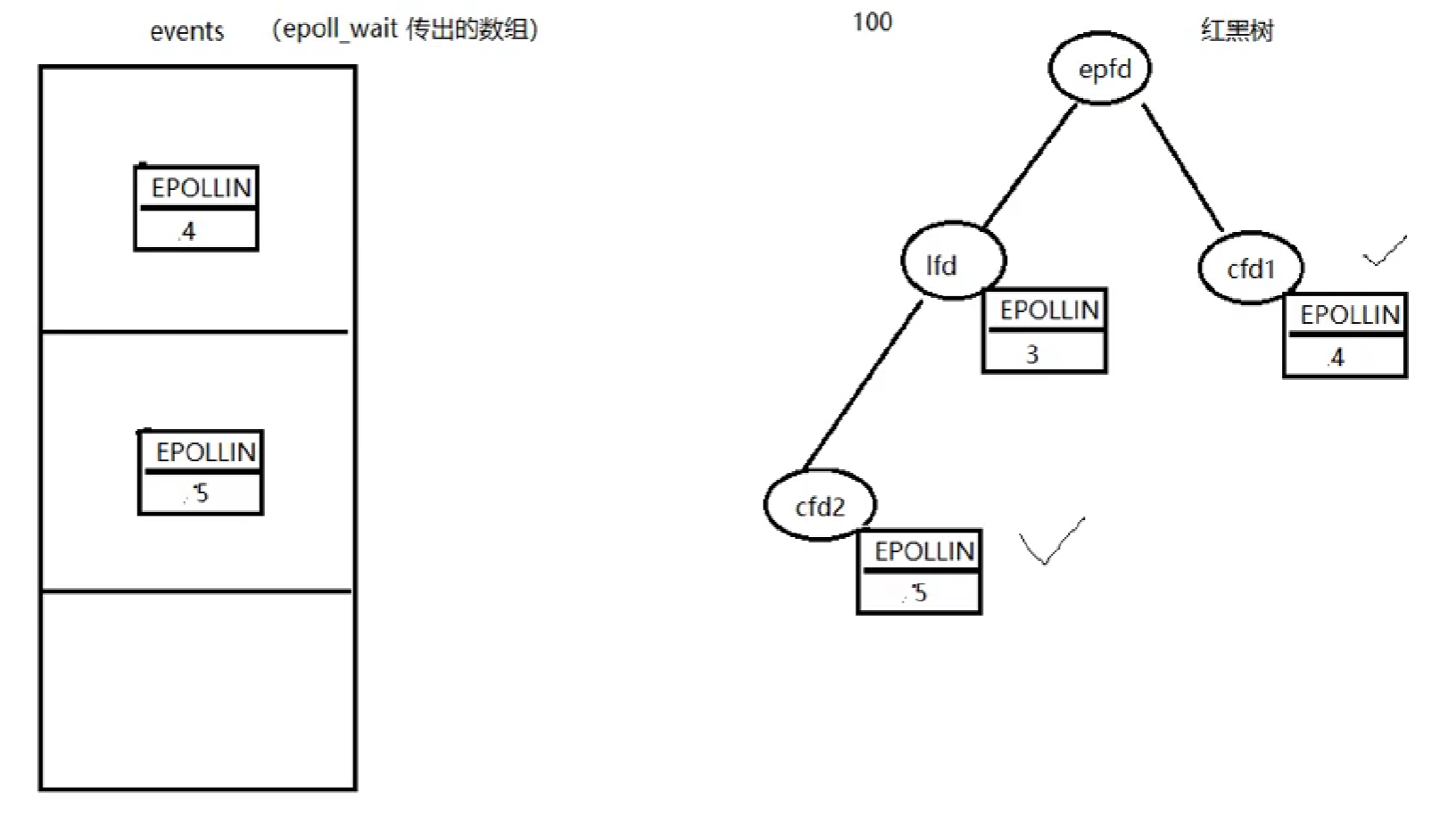 int epoll_create(int size):size:创建的红黑树的监听节点数量。(仅供内核参考。)返回值:指向新创建的红黑树的根节点的fd。失败:-1 errno操作监听红黑树