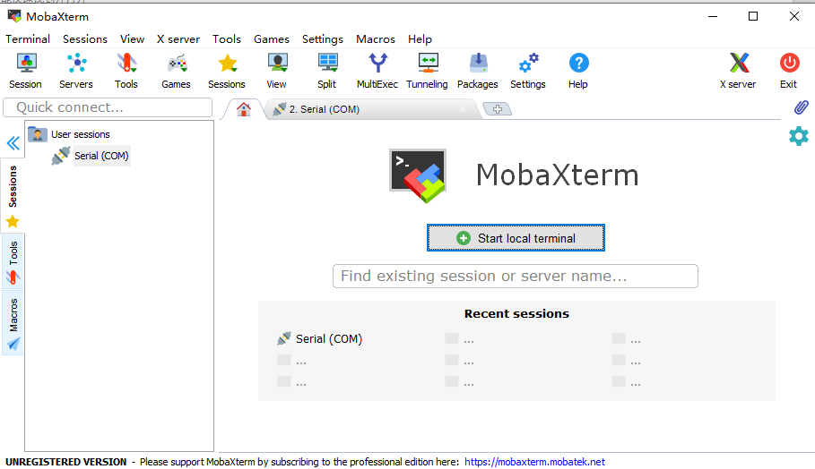 功能特点:其串口功能通过内置串行终端模块实现,可自动识别Windows系统下的COM端口,用户可通过菜单栏“Serial”选项创建串口会话并配置通信参数。它将串口通信整合进庞大工具生态系统,同时支持SSH、Telnet、RDP、VNC、FTP、X11转发等多种协议,专业版功能更强大,支持会话持久化、宏命令自动化等。