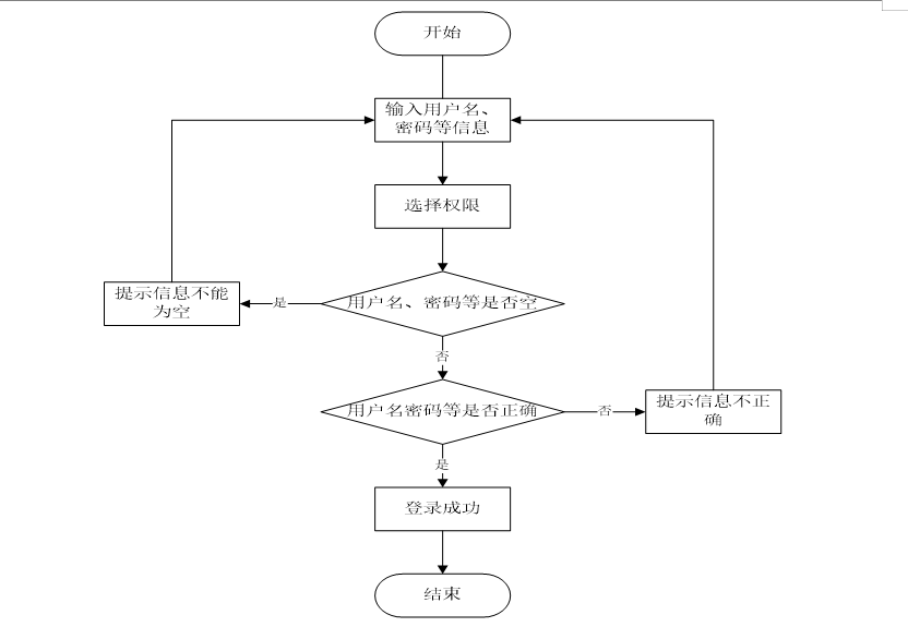 登录流程实现了管理员和其他用户的登录,在登录页面需要用户填写自己的信息,前端页面会将信息传递给后端接口,然后查询数据库确定该身份有效后登录成功,否则此用户登录失败,需要重新填写信息,进行再次验证,如图3-4所示。