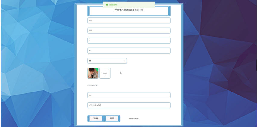 这些功能的集成使得本系统能够全面覆盖中学生心理健康管理的各个方面,为学校、教师、学生及其家长提供一个全面的管理工具。通过本系统,可以更轻松地跟踪和管理中学生的心理健康状况,促进学生的全面发展和健康成长。