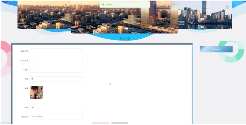 在个人中心页面可以输入个人详细信息,进行信息更新操作,如图5-5所示。