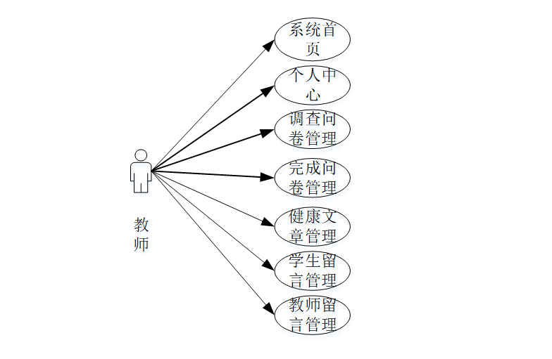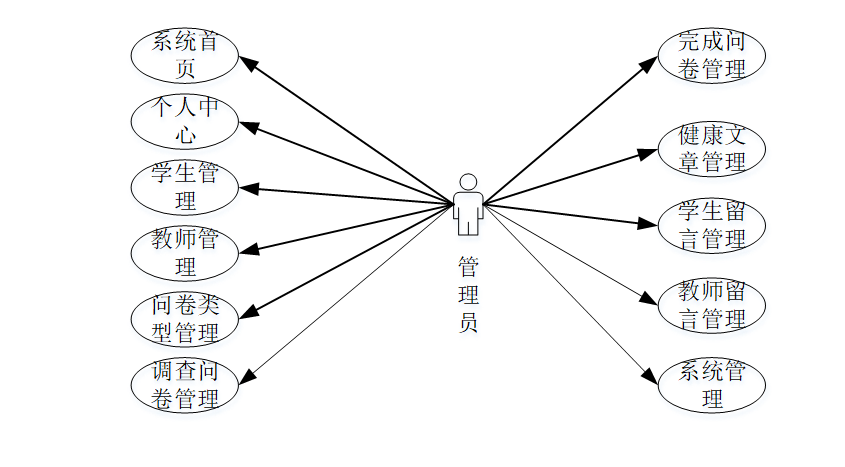 用例图,即以用户视角来描述本中学生心理健康管理系统的功能,前面已经分析了本中学生心理健康管理系统的总体设计,讨论了各个方面的需求。下面,将以管理员和学生、教师为例。