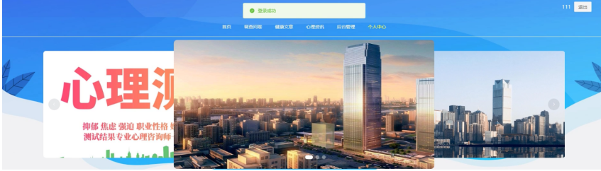 首页展示:提供系统导航条,链接到调查问卷、健康文章、心理咨询等模块。