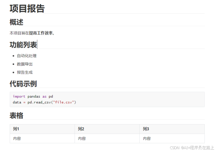 仅通过少量符号(如 #、*、[]())就能快速定义标题、列表、链接等样式,最终可导出为 HTML、PDF、文档等格式。
