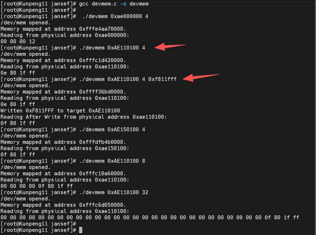 编译程序就是最简单的gcc,然后运用devmem程序读写指定地址的内存即可。