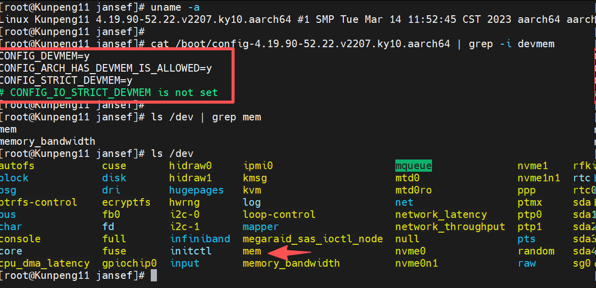 机器中存在/dev/mem这个设备的前提是kernel必须打开config,主要是前两个: