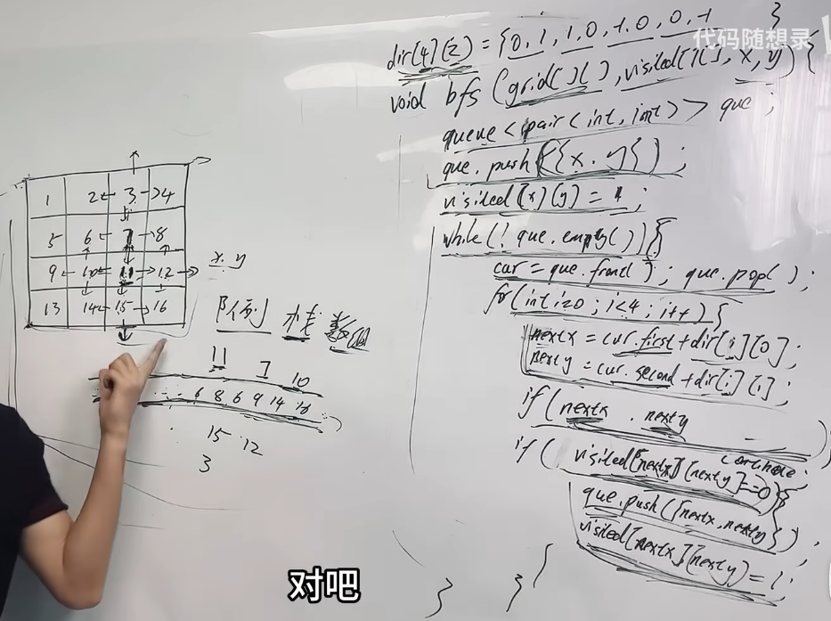 - 核心思想:从起点开始,先访问当前层的所有节点,再依次访问下一层的所有节点,像 “水波扩散” 一样逐层推进。
