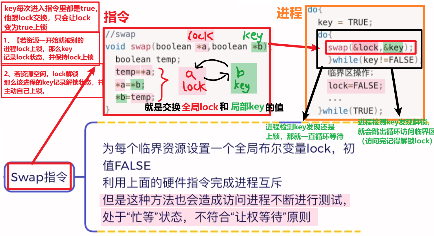 交换什么:【资源锁的状态lock】和【进程的key: 记录lock旧值】