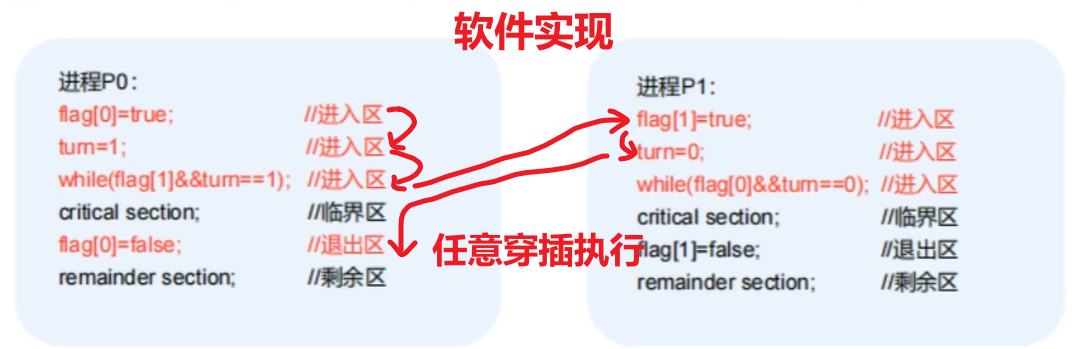 - 2、【软件实现】的各个进程代码可以并发穿插执行,但是【硬件机器指令】不行