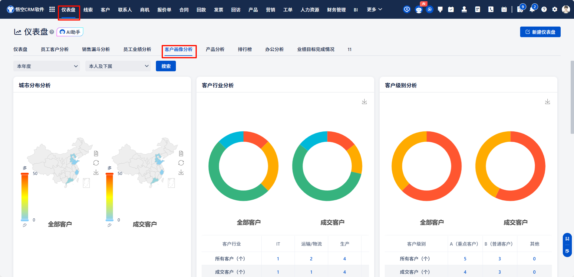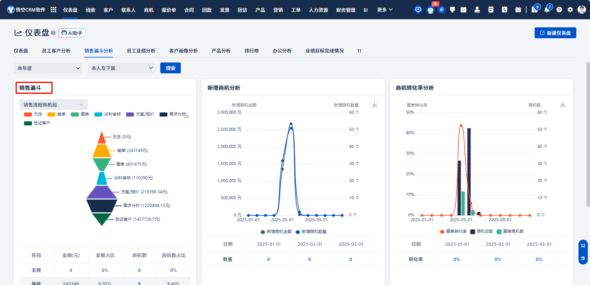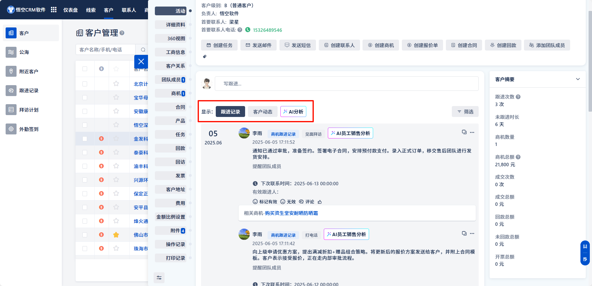 悟空AI CRM提供了丰富的数据分析功能,帮助你深入了解客户群体的特征和行为。你可以通过系统生成的报告和图表,如客户分布图、客户价值分析图等,了解不同客户群体的特点,优化客户管理策略。