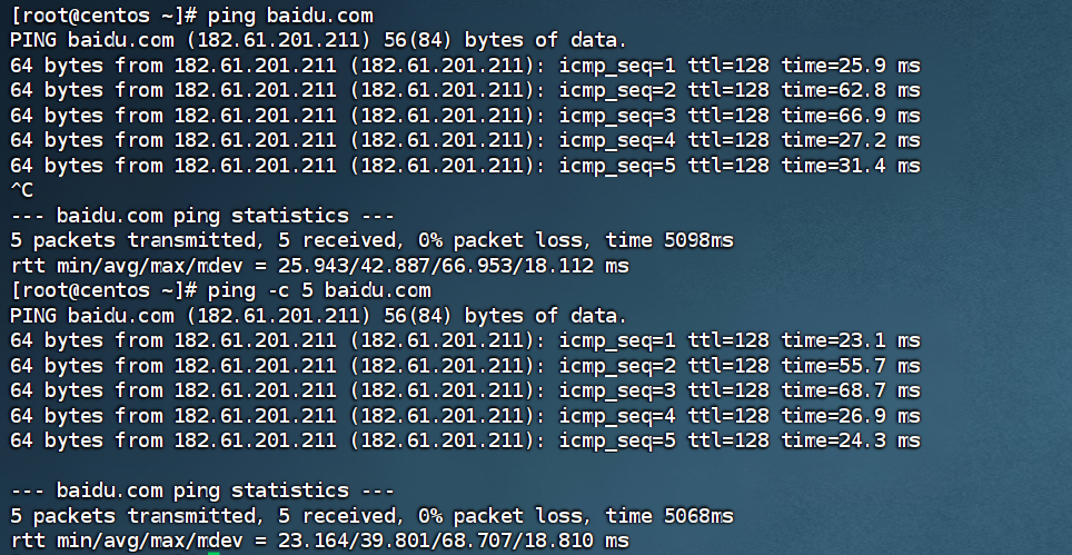 - 选项:-c,检查的次数,不使用-c选项,将无限次数持续检查
