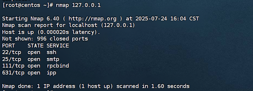 使用nmap命令,安装nmap: yum -y install nmap