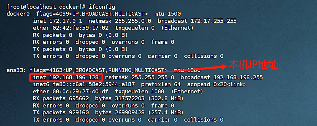 可以通过命令: ifconfig,查看本机的ip地址,如无法使用ifconfig命令,可以安装:yum-yinstall net-tools