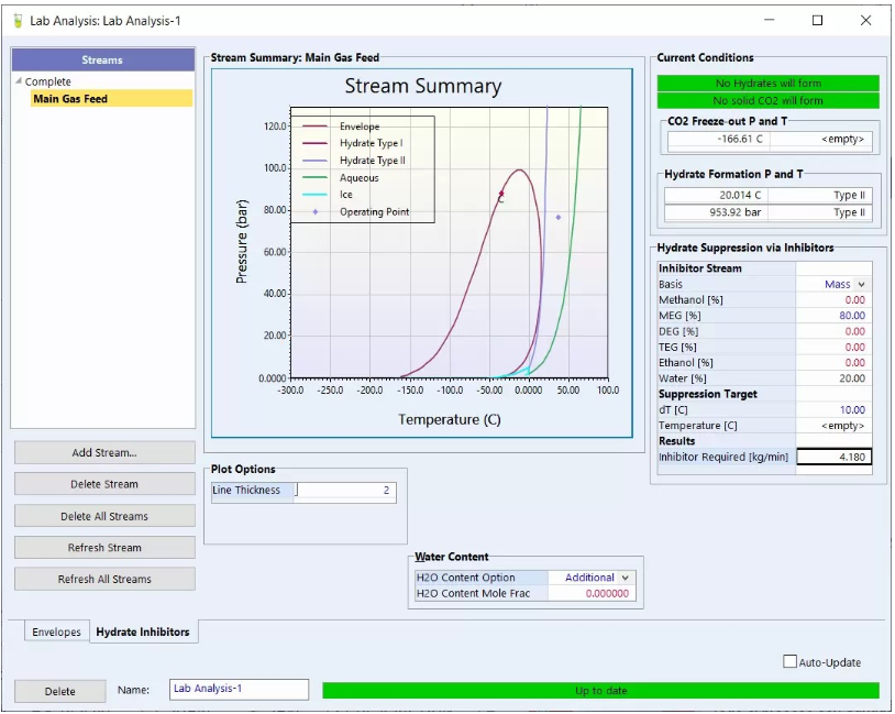 该图展示了天然气处理模拟工具的水合物形成分析界面。