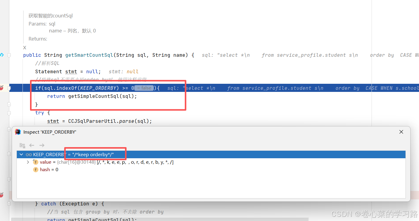 PageHelper 源码中存在特殊注释标识/*keep orderby*/