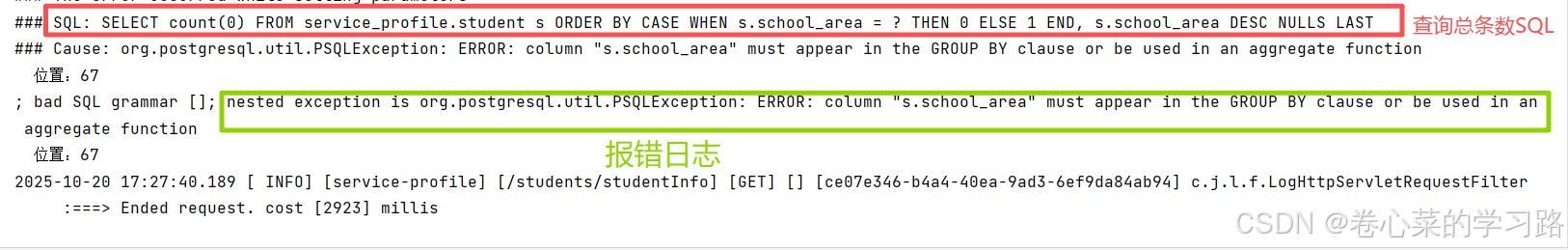 <select id="selectTest" parameterType="com.jiuaoedu.serviceprofile.pojo.student.StudentDetail" resultMap="BaseResultMap">select *from service_profile.student s/*keep orderby*/ -- 关键注释:强制生成嵌套COUNT查询order by CASE WHEN s.school_area = #{schoolArea} THEN 0 ELSE 1 END,s.school_area DESC NULLS LAST