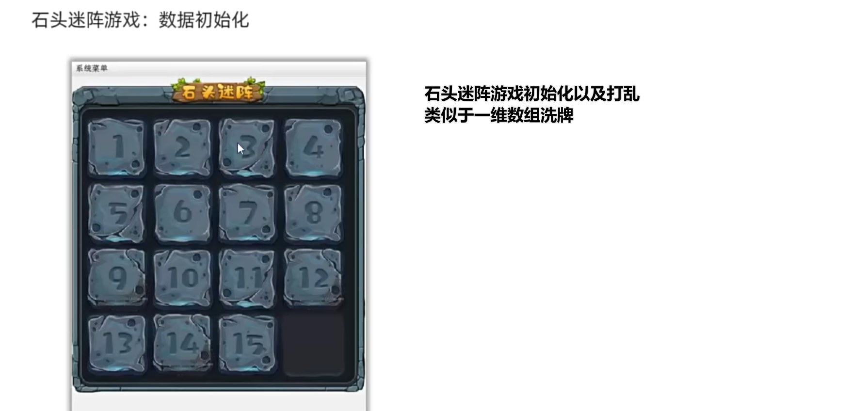 public class test {/*** 程序入口方法,调用start方法处理4x4数组* @param args 命令行参数*/public static void main(String[] args) {start(4);}/*** 初始化二维数组并打乱其元素顺序* @param n 二维数组的行列数*/public static void start(int n){// 创建n×n的二维数组int arr[][] = new int[n][n];int ant = 1;// 按顺序填充数组,从1开始递增for (int i = 0; i < n; i++){for (int j = 0; j < n; j++){arr[i][j] = ant;ant++;}}printArray(arr);// 打乱二维数组for (int i = 0; i < n; i++){for (int j = 0; j < n; j++){int random1 = (int)(Math.random() * n);int random2 = (int)(Math.random() * n);int temp = arr[i][j];arr[i][j] = arr[random1][random2];arr[random1][random2] = temp;}}System.out.println("打乱后的数组为:");printArray(arr);}/*** 打印二维数组* @param arr 待打印的二维数组*/public static void printArray(int[] [] arr){for (int i = 0; i < arr.length; i++){for (int j = 0; j < arr[i].length; j++){System.out.printf("%4d",arr[i][j]);}System.out.println();}}
