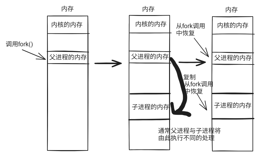 1.为子进程申请内存空间,并复制父进程的内存到子进程的内存空间